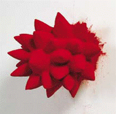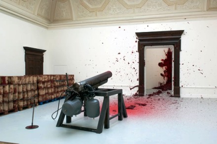 While many of Kapoor’s pieces are large sculptures, the artist has stated that these material features are only inviting the viewer to search for a deeper meaning. Visually, the works appear simplistic, but Kapoor invites the viewers to search for something more complex. This current exhibition focuses on artworks formed without much help from the artist. An example of one of these “auto-generated” pieces is a cannon projecting red wax into onto a white wall, Shooting into the Corner (2008-09), on show at the exhibit. The juxtaposition of the candy-cane colors is particularly striking.