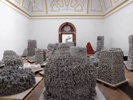Greyman Cries, Shaman Dies, Billowing Smoke, Beauty Evolved (2008-9) is a piece by Kapoor that looks like many small sculptures clumped together, or, as the museum noted, a ruined city of sorts (Pompeii, perhaps). On the other hand, it almost resembles a child’s tediously made “drip” sand castle at the beach. The exhibition encourages visitors to think about ruins in general and to contemplate their importance to the modern world.