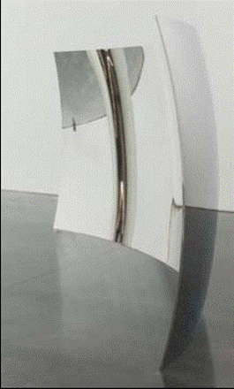 Vertigo (2008) is a stainless steel structure that, when approached, flips the viewer’s image upside down. Its circus effect should both amuse and inspire thought in visitors. The piece plays with the idea of both identification and of perception, distorting both a virtual image and the viewer’s preconceived idea of himself.