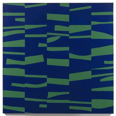 Ellsworth Kelly, born in 1932, is an American painter who uses bright colors and subscribes to the theory of minimalism. The painting above, The Meschers, highlights both of these qualities. It is a relatively simple painting, comprised of alternating, uneven blue and green dashes. The blue and green parts of the painting are harshly separated, recalling the hard-edge painting movement, a term coined in the late 1950s.