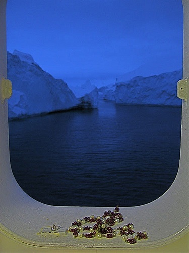 Sohpie Calle’s mother had three wishes before she died. She dreamed of visiting the ocean, New York, and the North Pole; none of which were ever achieved. Upon her death, the artist decided to gather possessions that represented her own image of her mother, and to take them to the North Pole to “bury” her there. Calle traveled to Greenland with the 2008 Cape Farewell Expedition. When the group reached the northernmost point of their trip, the artist went ashore with a family photo, her mother’s beloved white and red Chanel necklace, and diamond ring, which Calle’s grandfather had traded a building for in the midst of World War II. While Calle performed this ceremony, her companions on the Cape Farewell Expedition sang a verse of Marilyn Monroe. Calle believes this ritual combined her mother’s two greatest passions: the North Pole and charming possessions. The commemorative act of burying her mother’s jewelry in a glacier, while contemplating the objects’ past and future, is represented in this series of works.