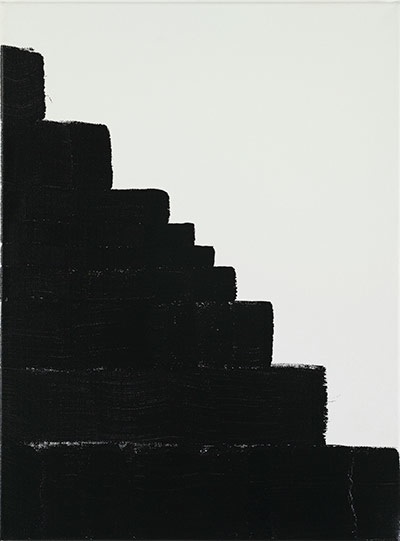 Bradley chose to explore Creed’s interest in staircases throughout the exhibition, particularly through paintings like Work No. 508. Every positive plane creates a negative one beside it, and every ascending staircase creates a descending one above it, in an elegant display of balance and order.