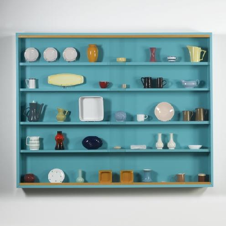 Of the twenty-four works that failed to find buyers at today’s sale, the most notable was the predicted top lot; Damien Hirst‘s We’ve Got Style (The Vessel Collection – Blue). Earlier this month The Economist reported that the average auction price for an artwork by Damien Hirst had shrunk from $831,000 in 2008 to $136,000 so far in 2010. While this decline can be blamed, in part, on the recession it has more to do with Beautiful Inside My Head Forever; the famous sale conceived by the artist which began the very evening that Lehman Brothers went bankrupt. Over two days, 233 new works by Hirst were sold for a total of $270million resulting in a market flooded by the artist’s work. And so it came as little surprise today when We’ve Got Style (The Vessel Collection – Blue), an early cabinet piece holding ceramic objects, failed to find a single bidder and was passed at $200,000. The work had been estimated to fetch between $800,000 and $1.2 million.