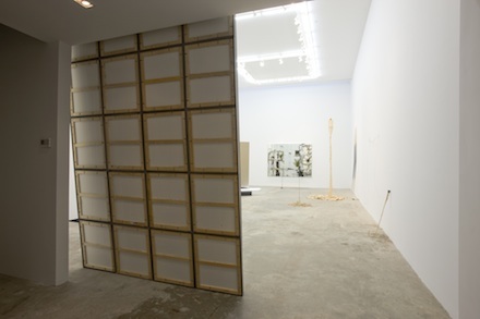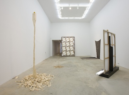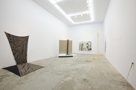 Gallery owners Joel Mesler and Carol Cohen present a skillfully-curated first show featuring large-scale installations by five emerging artists. Heather Cook, Brendan Fowler, and Phil Wagner are all currently based in Los Angeles; David Adamo works in Berlin, and Rashid Johnson in New York. Through each artist’s differing approach, the works on view reveal five discreet personal visions. Each mixed media installation purposefully reveals an individual artistic process. Mesler and Cohen strive to underplay the image of the gallery itself, in order to emphasize the artists on display.