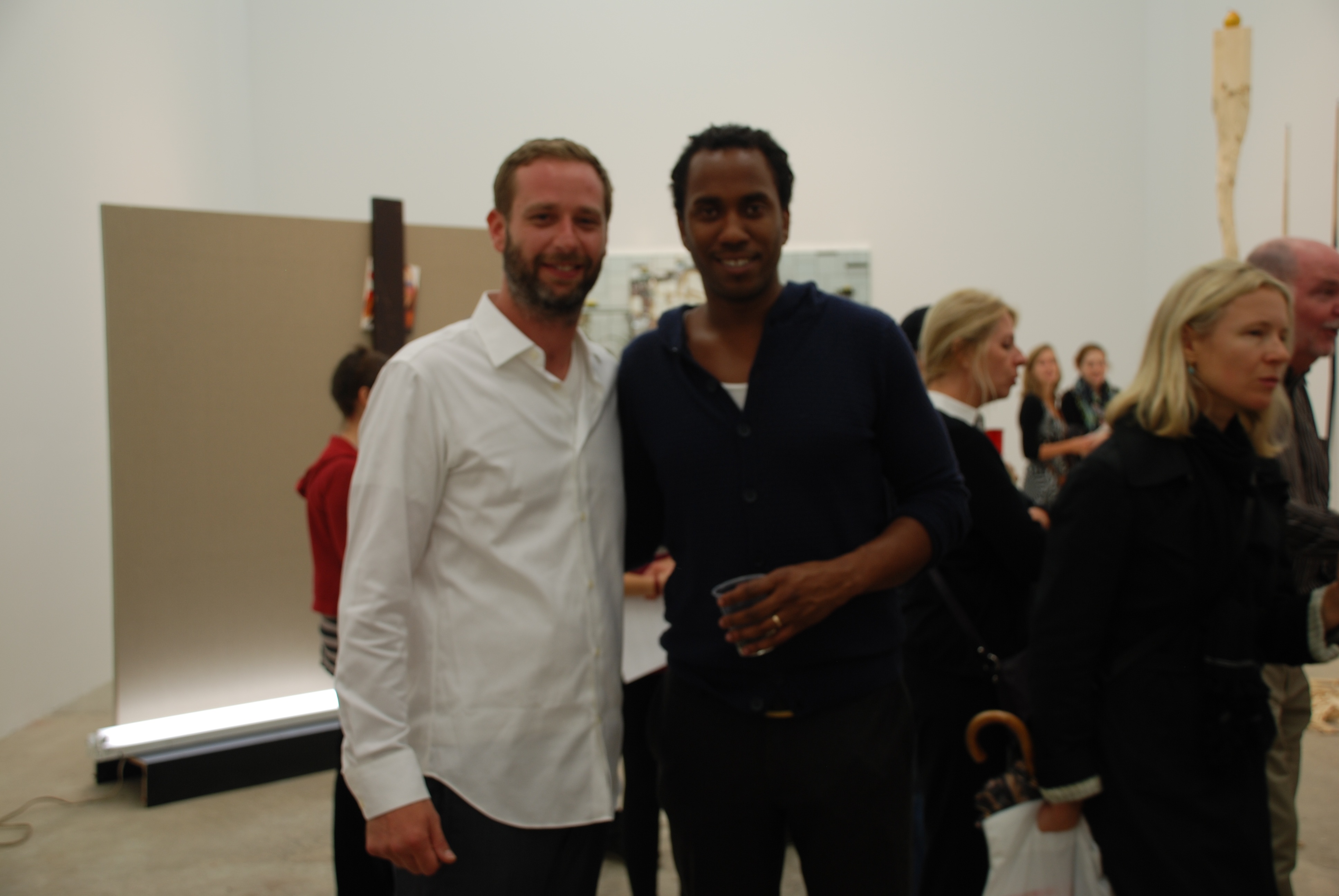 Joel Mesler, gallery owner, with Rashid Johnson, exhibiting artist.