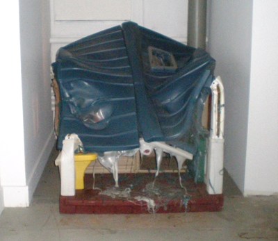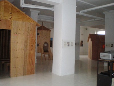These structures take up more than half the exhibit. All imply displacement, with the rocket ship suggesting a journey; they refer to the growing up and moving forward that are integral to the adolescent experience, and to the sense of remoteness and destruction that accompany this transitional phase.