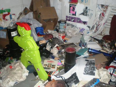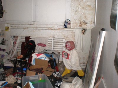 The exhibit spans the length of a long hallway so that the viewer re-visits the first two rooms upon exiting the gallery. The first room of the exhibit is full of displaced objects from Franco’s own adolescence. Posters on the wall are supported by one or two pieces of masking tape. The room is disorganized and overwhelming, comprised of three installations: Cat Sculpture (2008), Scatter Piece (2010), and two videos: Dicknose in Paris (2008) and Masculinity and Me (2008). Dicknose in Paris (2008) is described by the gallery as “toying with the language of popular culture… including [Franco’s] own persona.” The piece features Franco talking with a plastic penis on his nose, portraying him as an accessible, humanized entity to the public. Paradoxically, this gesture conveys the image of a more self-aware, perhaps even mature figure than many of his contemporaries.