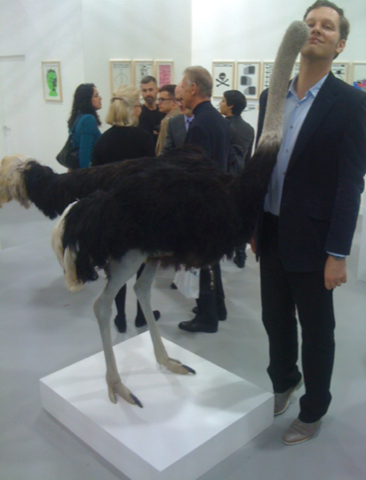 David Shrigley next to his work, Ostrich, 2009, Photo via the_andy_show