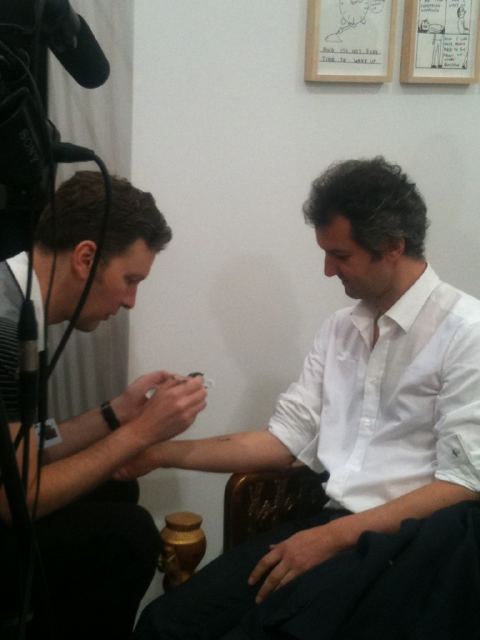 David Shringley, giving tattoos at Freize 2010, photo via TATEETCmag