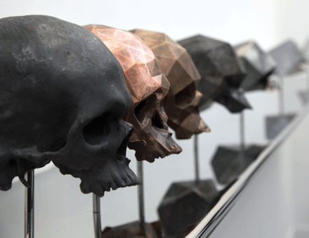 – Matthew Day Jackson’s “The Way we Were”, a series of scultped skulls done in titanium, aluminum, bronze, copper, iron, lead, and steel (photo above), a 2010 edition of three, sold for $130,000 each.