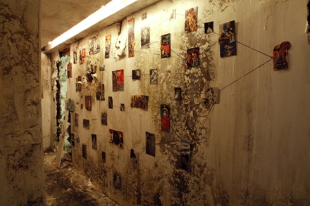 Where memory fails, myth takes the reigns. All of the paraphernalia of the installation (collages, archaeological art-ifacts, perpetuation of motifs) convincingly pass as a version of the truth. The experience of these intricate lies reveals the fragility of our understanding of the past, and exposes some of the cultural mechanisms involved in the process of writing the narrative history. The viewer of Bright White Underground is engulfed in a temporally-hybridized account, peeking through cracks into a world both foreign and hauntingly familiar.