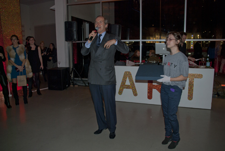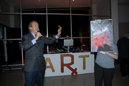 Last night was the annual benefit for RxArt, held on 29th Street, just off 6th avenue in Chelsea, New York. RxArt is a charity organization which fosters ” artistic expression and awareness through the challenging yet rewarding task of engaging patients through contemporary art in healthcare facilities.” The non-profit organization curates and installs art work, from some of the most recognizable contemporary artists working today, in hospitals and other healthcare locations. Last night was, again, a success with artist’s work for silent auction along the walls of the event space and with a live auction that took place at 9 o’clock which featured the master of ceremonies Simone de Pury in rare auctioneer form. The event never fails in gathering many notable artists and art world professionals as attendees, this year bringing Kaws, Dan Colen, Will Cotton, Nate Lowman, Aaron Young, Terry Richardson, Ryan McGinley and others.