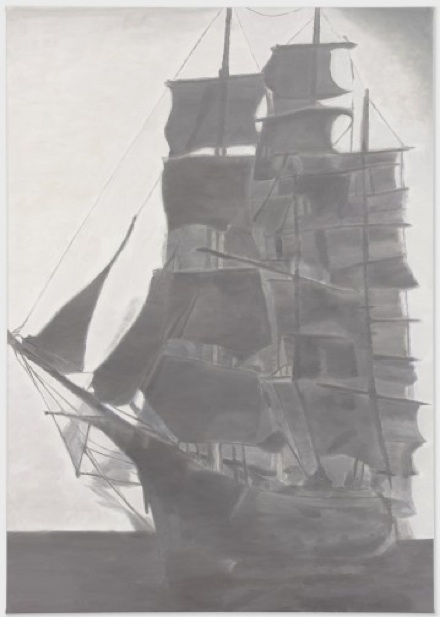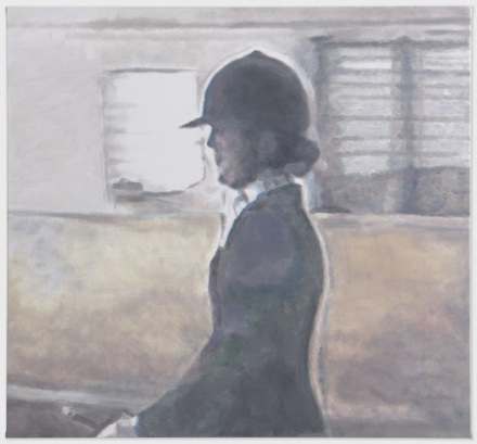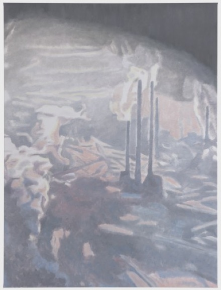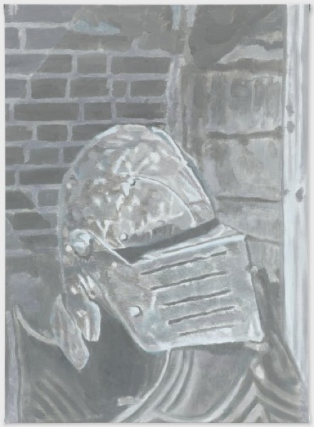 Images like Factory, based on a magazine photograph, address some of the enduring environmental and topographical outcomes of corporate activity – the smog and hazy ruin of the landscape formally superseding the smokestacks that generated them. The Riding stages a kind of continuum between traditions of European chivalry, represented elsewhere in the series in works like Armour, and the elitism of modern equestrian culture.