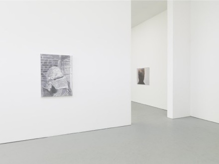 From empty boardrooms like the one shown in Conference, to the obscured faces of the participants in Panel and the disused plate mail of Armour, Tuymans emphasizes the loss of identity and individualism incurred across social classes throughout the course of industrialization. The most literal representation of this motif is Anonymous: a faceless portrait based on an advertisement, in which the participation of the media in the process of cultural homogenization is also addressed.