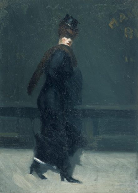 Modern Life situates Hopper’s earliest works within the context of Ashcan painters like Robert Henri, with whom he studied in the first years of the twentieth century. As a student, he admired works by the French Impressionists (Manet and Degas, in particular), taking three trips to Europe where he painted outdoors and observed public urban interactions. While he was inspired by both the American and European approach to depicting scenes from everyday life, he declined to adopt the more overt stylization and narrative specificity of his peers.