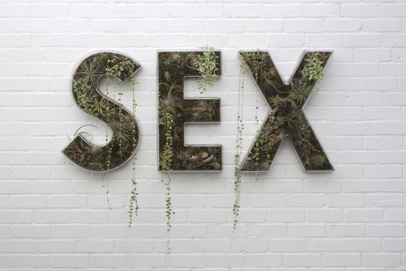 In addition to the central installation of House, the exhibition has several wall hangings, titled living words, that incorporate whole internal ecosystems. The piece SEX ruminates on a central fixture of human life and connects it to the natural world.