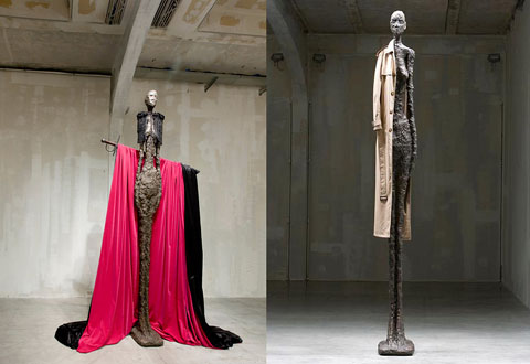 With his newest show, Giacometti Variations, at the Prada Foundation in Milan, conceptual artist John Baldessari comments on the culture of fashion in a city known for its style. “There is currently a blurring of art and fashion. It is de rigueur that fashion models be extremely tall and thin,” says Baldessari. “Giacometti’s figures are the most emaciated and skinny sculptures that exist. Why not push that further?”