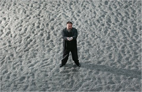Ai Weiwei and his sunflower seeds in the Turbine Hall of the Tate Modern, via NY Times