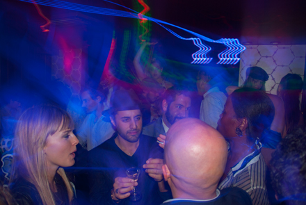 AO vistited the Delano’s Florida Room where graffiti artist/nightlife curator André Sarraiva has set up his Art Basel Miami Beach residency of Le Baron, featuring a five-day series of parties coinciding with the Art Fair events. Le Baron hosts similar events in Art Basel in Switzerland and at the Venice Biennale.  Since 2005, the concept has been in Miami for the fair beginning at the karaoke club, Studio. The entrance policy is likely the toughest of any nightclub in Miami during the fair.  While the line built up outside the party picked up roughly after the MOCA sponsored LCD Soundsystem set finished at the Raleigh steps away and continued on until at least 4am.