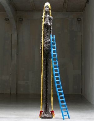 With his newest show, Giacometti Variations, at the Prada Foundation in Milan, conceptual artist John Baldessari comments on the culture of fashion in a city known for its style. “There is currently a blurring of art and fashion. It is de rigueur that fashion models be extremely tall and thin,” says Baldessari. “Giacometti’s figures are the most emaciated and skinny sculptures that exist. Why not push that further?”