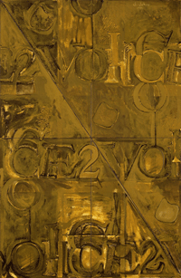 Johns has dealt with popular symbolism since his first major show, also at the Castelli Gallery in 1957. There, his most well-known painting, Flag (1955), was unveiled. On the tail of Abstract Expressionism, Johns and his lover and peer Robert Rauschenberg, represented a new movement of artists concerned with the production – and subversion – of mass meaning. Johns’ work centers on images of flags, targets, maps, letters and numbers, rendered in a lush painterly style, to deconstruct common symbols and question the role of the arts in relation to the production of popular signage. The power of Flag 1955 is its separation of the American flag from a patriotic context, rendered instead as a purely visual entity. Johns is primarily considered within the Neo-Dadaist movement of the early 1960s, but his use of popular imagery places him in relation to the emergence of Pop Art and he is often considered an early influence of the genre.