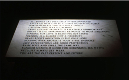 Jenny Holzer, Truisms: All things are delicately connected…, 1987. Danby royal marble.