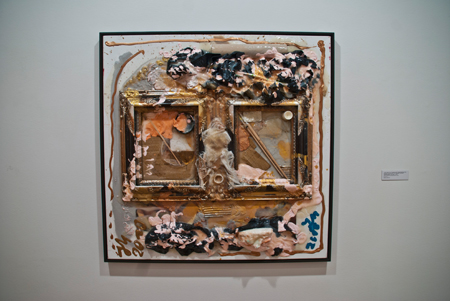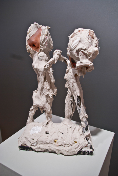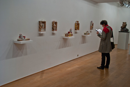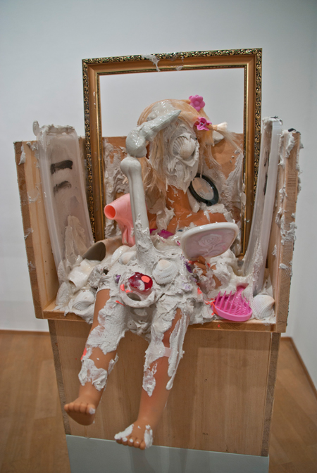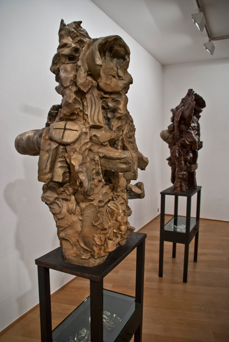 The artist’s sculpture installations feature mini-installations, figurines, primitive and futuristic bronzes—the result of a decade of practice in three-dimensional work. They echo similar sculptural works displayed recently at the artist’s first major solo museum show in the US at the Museum of Contemporary Art (MOCA) in Miami this past December. Meese brings such sculptural works together in the hope that they “talk amongst themselves,” and also that they critique his paintings. “The sculptures have to be satisfied,” says Meese.