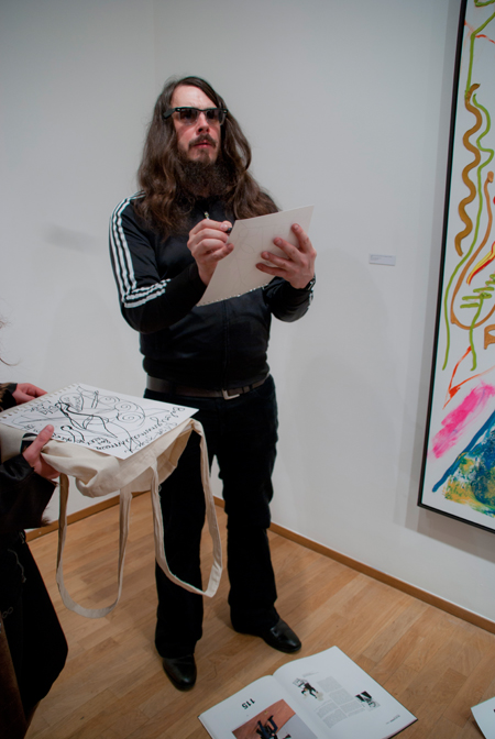 Daniel Templon and the artist Jonathan Meese at Daniel Templon Gallery all photos by Caroline Claisse for Art Observed