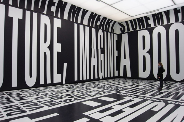 Taking Place invites viewers to experience the architectural beauty of the Stedelijk with access to strategically placed empty gallery spaces. As renovation work continues, Taking Place is inspired by this transitional moment in the history of the museum. The exhibition ruminates on how artists occupy museum space and how museums garner cultural meaning themselves, with whole galleries alternately empty or completely taken over by single artists. It is an utterly unique moment to experience the Stedelijk, originally opened in 1895 and one out of three of Amsterdam’s major museums, along with the Van Gogh and the Rijksmuseum. In addition to Barbara Kruger’s installation, the artist Roman Ondak has filled a gallery with a piece titled Measuring the Universe (2007), a participatory work in which museum attendants measure the height of visitors and record it onto the gallery walls.
