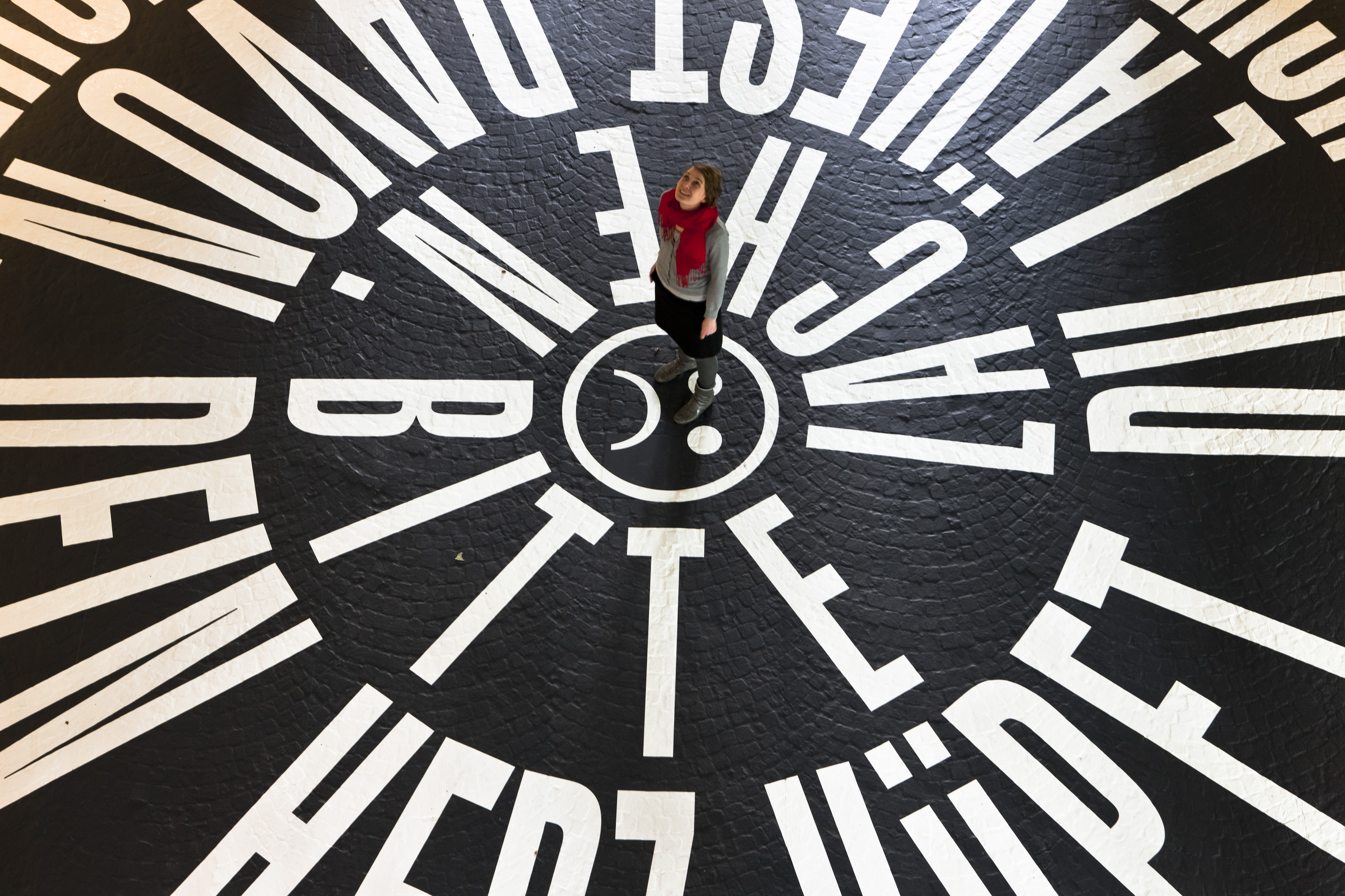 Barbara Kruger’s Circus installation covers the rotunda of the Schirn Kunsthalle in Frankfurt through January 30. With her unmistakable aesthetic and poignant use of language, Kruger interferes with the traditional manner in which information is transmitted through the museum institution. Her commitment to dismantling clichés and pervasive stereotypes through the use of monumental text makes her work both politically relevant and visually arresting.