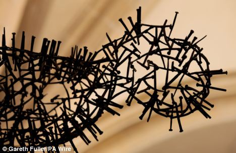 Antony Gormley, famed English sculptor and creator of the well known public installations featuring manifestations of the human form “Angel of the North” (Gateshead, England) as well as “Event Horizon“(New York/London) and “One and Other” (London) recently unveiled his newest creation in an uncanny location – a crypt within Canterbury Cathedral dating back to the 12th century. The 2 meter-long piece, entitled “Transport”, hovers suspended from the vaulted ceilings in permanent limbo. Shaped in the form of the human body, the work is entirely constructed from hand-made nails re-purposed from a recent restoration. Though seemingly gruesome, Gormley is in fact attempting to explore a higher level of meaning above the physical realm. The specific form calls attention to the idea of our own mortality, as Gormley seemingly is pointing at the transient nature of the human body.