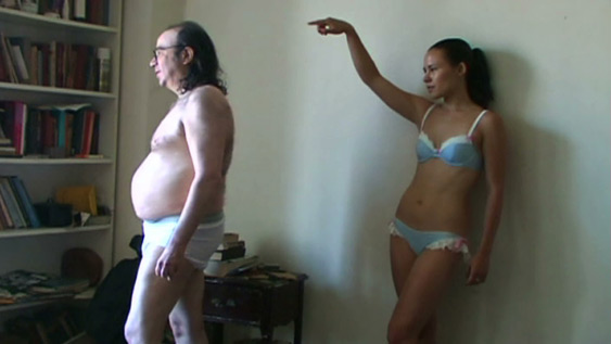 Only the Lonely, Nakadate’s early-career retrospective at P.S. 1, which shows most of her work to date, illustrates the artist’s interest in questions of exploitation, but complicates the idea that she is purely exploiting her actors. In Exorcism in January, a new work from 2009, Nakadate rolls around on the floor of a man’s apartment while he chants, in an attempt to exorcise both of their loneliness. The video is compelling not least because the man is one who appears frequently in the artist’s work and it is clear that their dynamic in Exorcism has fundamentally shifted from Nakadate’s earlier experiments. Instead of the viewer (and presumably Nakadate) waiting for what the stranger will do, Exorcism asks what will they do, as Nakadate takes on an equivalent role to her actor. It becomes believable that Nakadate is lonely too, as we see her engage in a performance of desperation with an old accomplice.