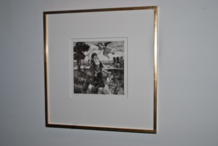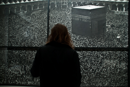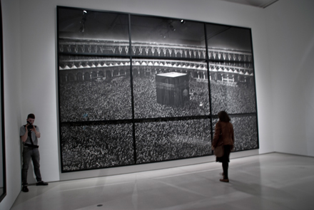Longo’s works are photographically-based, yet abstract and conceptual upon closer inspection. The three multi-paneled monumental works in the exhibit show images of St. Peter’s Basilica in Rome, the holiest site for Roman Catholics and a pilgrimage destination which boasts the largest interior of any Christian church in the world. Longo captures the Basilica with an eight-panel depiction of the vaulted main nave and side chapels. Also shown are a drawing of Mecca in Saudi Arabia, the most sacred site in Islam visited by pilgrims each year, and an abstract minimalist depiction of the Wailing Wall in Jerusalem. Said to be the last remnant of the Second Temple built around the time of Herod (19 BCE), the Wailing Wall is one of the most sacred sites in Judaism.