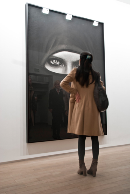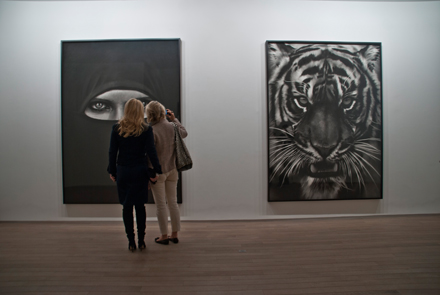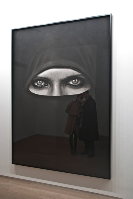 The exhibition also includes studies and large-scale single-panel works featuring themes which have interested him in recent years such as burqa-clad women, dark forests, tigers, forests, and rock concerts.
