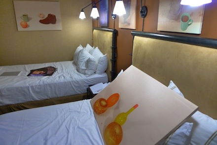 Works at Silvershed: Oliver Lenz (foreground bed), Patrick Meagher & Yunhee Min (middleground bed), Kerry Hassler (background on silver bed board)