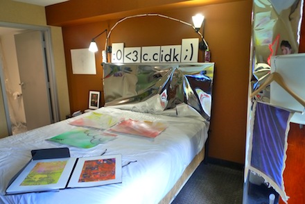 In an interview with Art Observed, Dependent Director Rose Marcus said the fair’s name could be interpreted as a form of institutional critique but from the beginning “couched in humor.” Marcus added, “Many of the artists you see are represented in both the Dependent and the Independent.” One goal of the fair was to present a variety of groups and galleries that possess elements of bricolage but that maintain a very professional practice. “It was curated as a tight snapshot of a group of people who are very intelligent, and very do-it-yourself—and that is reflected in their extensive professionalism,” Marcus said. The Dependent was also conceived to be an art fair that was from the beginning founded on transparency. The Director explained, “The fair’s structure was determined by its transparent economics. Exhibitors were given an hour to install because of hotel check-in times.” In addition, the rooms’ architecture guided the actions of the exhibitors in a way that promoted site-specificity.