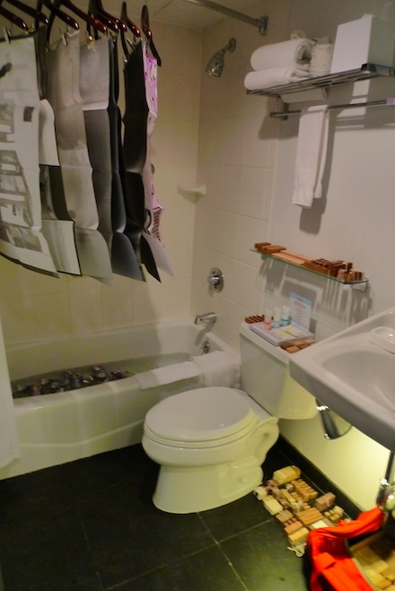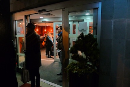 Friday evening’s Dependent Art Fair opened its doors for a one-night-only event showcasing the works of various galleries and artist groups. The newest addition to 2011’s growing roster of fairs, the Dependent was held on the 12th and 14th floors of Chelsea’s Sheraton Hotel. Fifteen exhibitors filled their respective hotel rooms with works for sale. Some revealed highly curated installations while others presented a collected showcase of individual works. The fifteen groups were given 60 minutes to install, with the fair beginning its preview hour at 4pm and closing altogether at 9 that evening. What began as a scattered number of curious collectors and onlookers grew quickly to a sizable throng of attendees navigating from room to room through the hotel’s packed hallways.