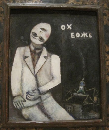 Above, detail, Chagall’s “Paris through the Window.” Below, “Oh God” (1919).