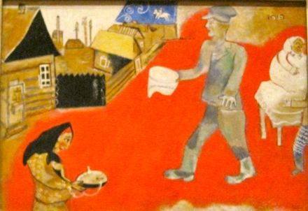 Chagall’s “Purim” (c. 1916-1917), at the Philadelphia Museum of Art.