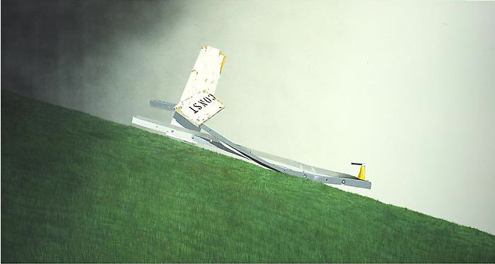 Currently on view at the Gagosian Gallery in Beverly Hills is a series of ten paintings by Ed Ruscha in an exhibition titled Psycho Spaghetti Westerns. The show opened with a star-studded evening gala on February 24th and is up through April 9, 2011. The ten large paintings each have a ground, most often natural and diagonally sloping across the canvas, on which realistically painted detritus is resting. In an interview with the Los Angeles Times, Ruscha explains that the title has little to do with “Spaghetti Western” films and more to do with the meaning of the three words themselves: “‘Spaghetti Westerns’ says it all: tangled up messes like spaghetti, and we’re living out here in the West, and we’re all psycho.”