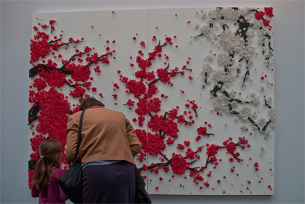 Art Paris is currently taking place at the Grand Palais in Paris, and will be open until April 3rd. The fair was inaugurated in 1998, moved to the Nave in the Grand Palais in 2006, and continues to grow each year, with over 40,000 people expected to attend. This year, Art Paris is partnered with special “crossover exchanges” at many Paris venues including La Maison Rouge, Palais de Tokyo, L’Espace Culturel Louis Vuitton and the Villa L, which will be showing works by Jeong-Hwa Choi, Dias & Riedweg, Mounir Fatmi, Daniel Firman, Kolkoz, and Aaron Young.
