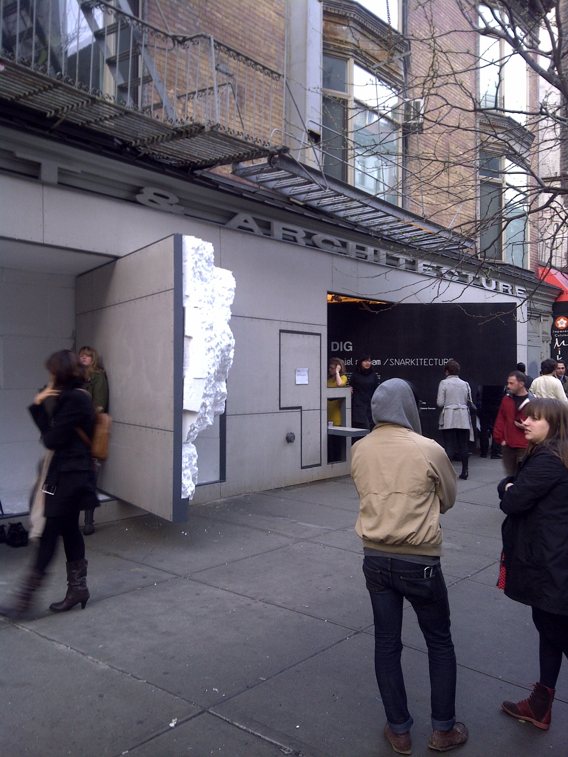 Daniel Arsham‘s recent collaboration with Storefront for Art and Architecture, entitled “DIG,” is comprised of three stages: an exhibition, installation and performances, and is performed by the artist along with the group Snarkitecture, which is “is a collaborative practice operating in territories between the disciplines of art and architecture,” according to their website.