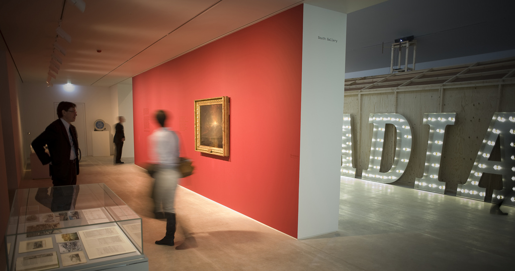 Arcadia, a newly-commissioned work by Ellen Harvey, recreates a life-size replica of the gallery JMW Turner created to house his work. Viewers enter the gallery and witness images of Margate instead of the paintings Turner had displayed during the time of his death.