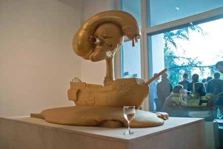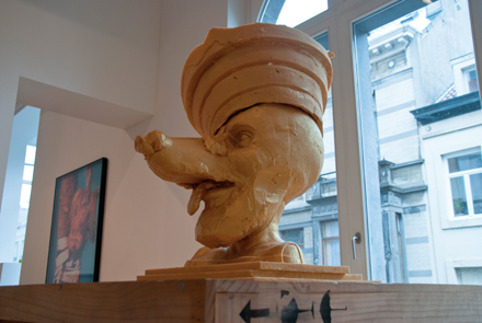 Art Observed was on site at the opening of Paul McCarthy “Selected Works” at the Charles Riva Collection Thursday, April 28th. The show’s opening fell on the inaugural night of Art Brussels 2011, which ArtInfo calls a “slow burn” – in an interview with Perry Rubenstein, the gallerist compared the show to Art Basel Miami Beach: “The collectors that attend [Art Brussels] are true connoisseurs — they look at work many times and engaged in informed dialogue before acquiring.” The same thoughtful collecting can be seen in Mr. Riva’s selection of 30 of McCarthy’s most seminal works.