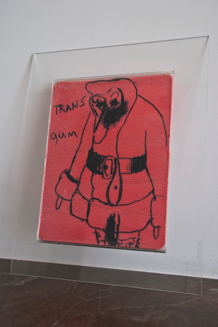 The Paul McCarthy pieces I own are almost all within the show. I wanted to keep one work upstairs– I thought it was too much to be exhibited downstairs. Also, I am still not sure about the Transgum, as it might not be strong enough to be part of the show. But I really like this piece. The show is a real chewing gum, so to speak, that you can eat– it was edited at 30 pieces.