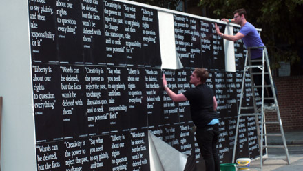 Installation of posters featuring quotes from Ai Weiwei’s blog (Detail)