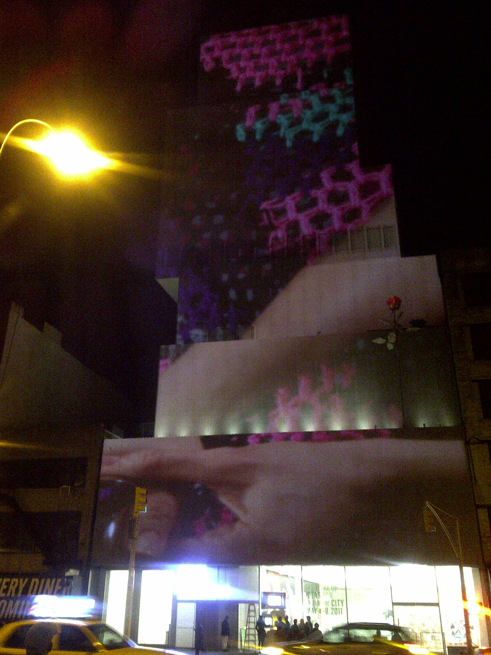 A video projection on the facade of the New Museum on Bowery by Flash:Light – All photos by Ilhan Kim for Art Observed unless noted