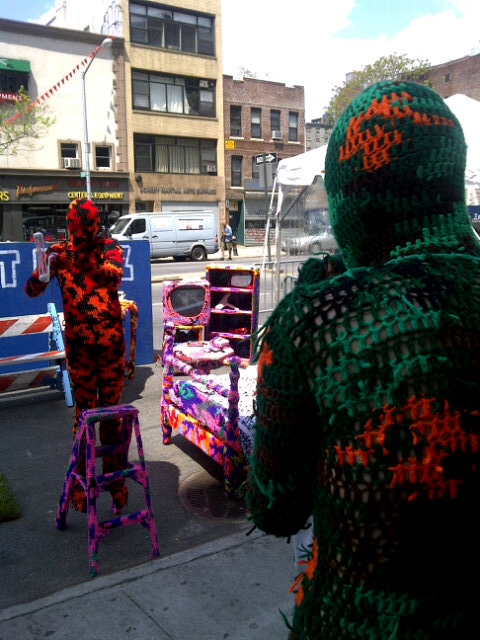 Agata Olek’s live knitted creations on Bowery for the Art Park