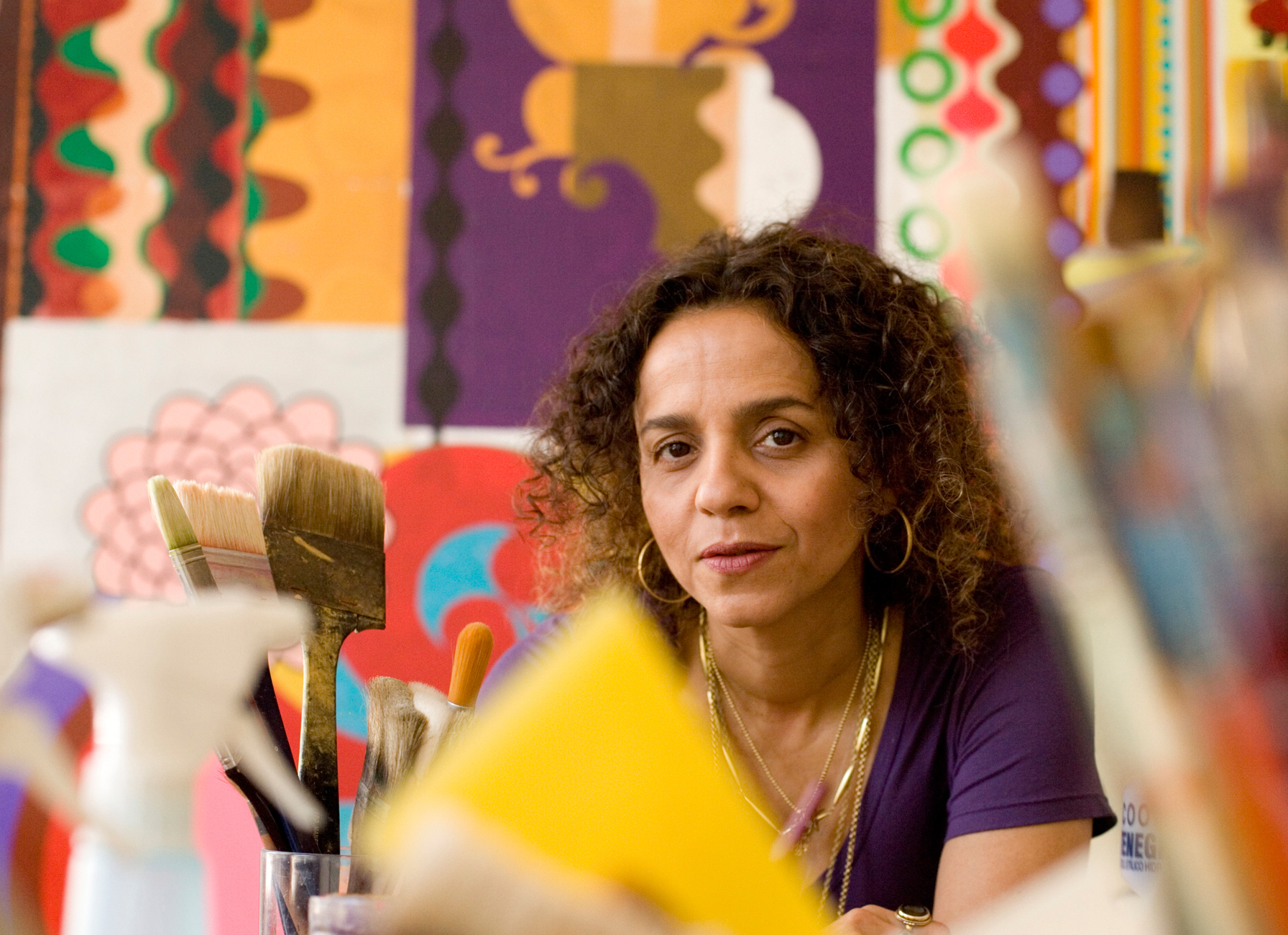 Milhazes’ art reveals vibrant compositions encompassing  colorful abstract ornaments, flower motifs, and geometric forms laden with the movement and rhythm of Brazil’s dynamic culture. Her vibrant abstract style recalls the evident influence of Henri Matisse but also echos the rhythmic geometric patterns of Piet Mondrian, and Sonia Delaunay.