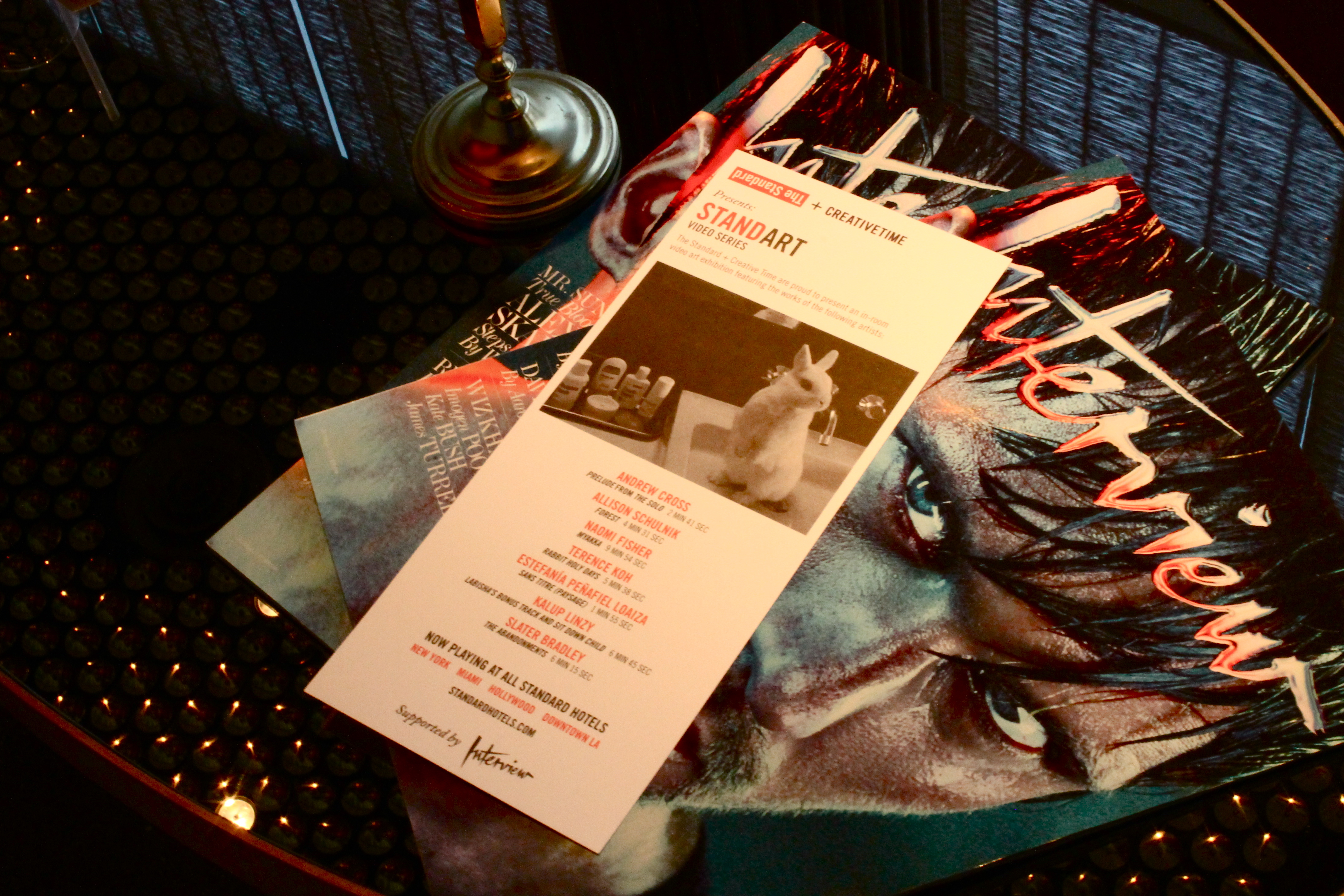 Monday night’s StandART Video Art Series Launch, curated by Anne Pasternak’s CreativeTime, showcased seven short films at the Standard Hotel, NYC. To date, CreativeTime has worked with over 2,000 artists to produce more than 335 at projects, the latest of which is bringing acclaimed contemporary works to each and every room within the Standard.